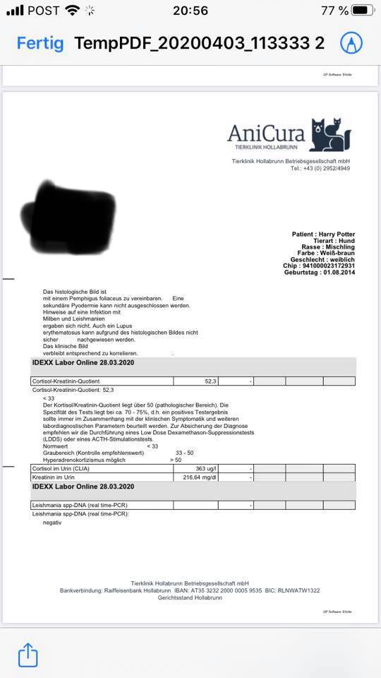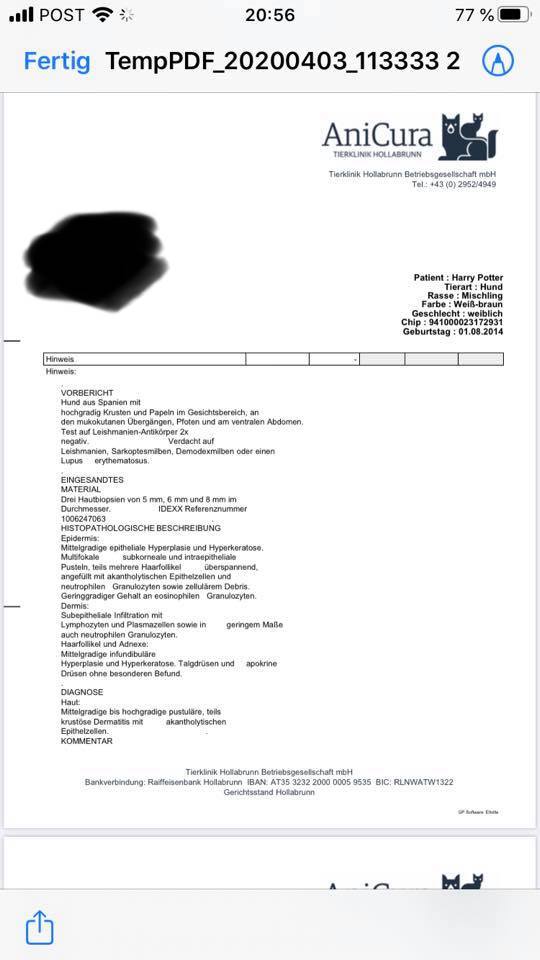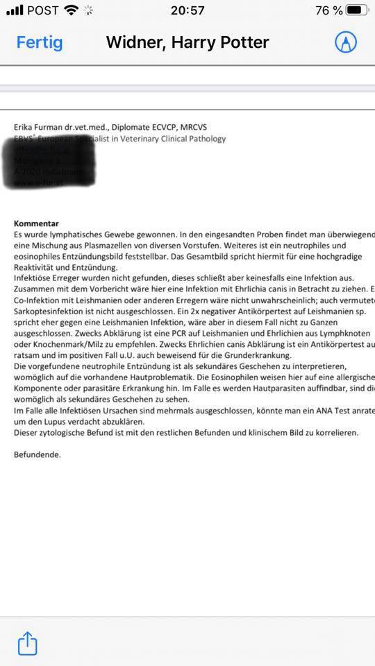 Harry Potter. Leider musste er einige Untersuchungen mitmachen, damit wir wissen was diese Pusteln auslöst. Hier nun alles was gemacht wurde. Es dürfte sich um eine Autoimmunerkrankung handeln. Wir sind zuversichtlich das wir in einigen Wochen ein gutes Ergebnis haben werden.